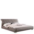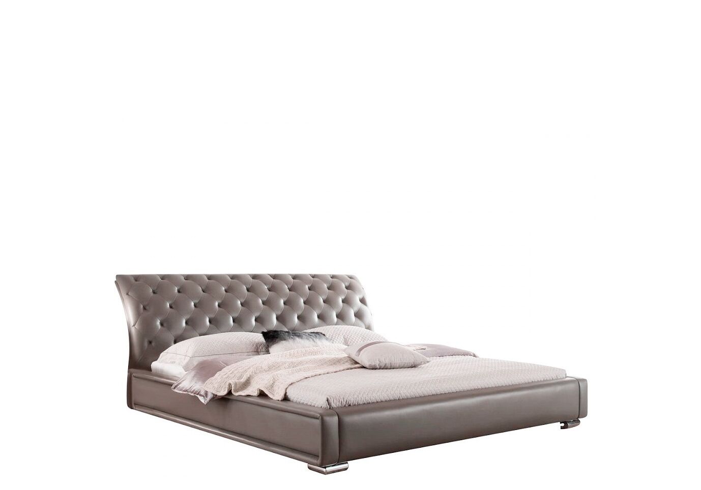 Кровать 1397 (160x200) серая без ящика для белья, Оригинальный модерновый дизайн кровати - её главная изюминка, которая заметна в каждой мельчайшей детали. Экокожа, простёганная пуговицами в изголовье, хромированные ножки и другие элементы - всё говорит о том, что перед нами уникальная спальня.