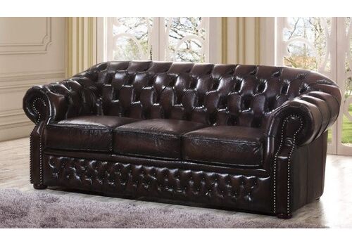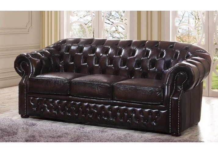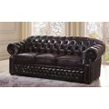 Диван-кровать B-128 (3-х местный). Обивка выполнена из натуральной кожи коричневого цвета. Диваны и кресло декорированы ромбовидной стяжкой "капитоне", подлокотники украшены декоративными гвоздями.