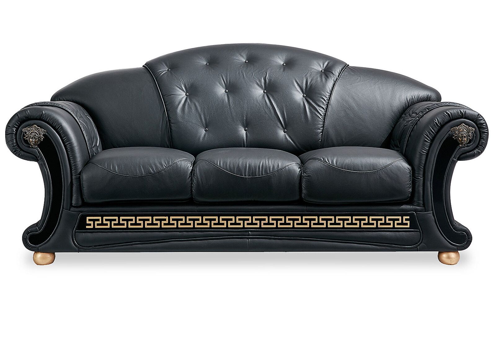 Диван-кровать B-128 (3-х местный). Обивка из натуральной кожи зелёного цвета. Диваны и кресло декорированы ромбовидной стяжкой "капитоне", подлокотники украшены декоративными гвоздями.
